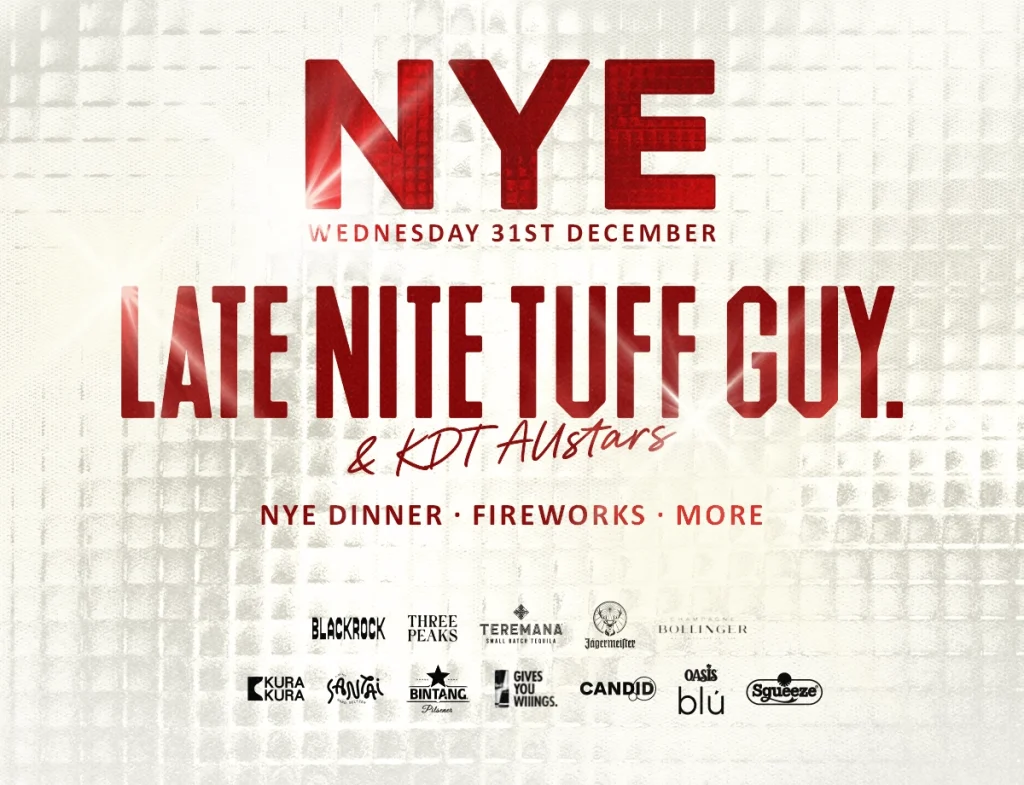 Australian powerhouse DJ & producer Late Nite Tuff Guy takes over the decks, weaving tropical disco grooves with his signature retro beats. Supporting the countdown, the KDT All Stars keep the energy high from sunset through midnight.